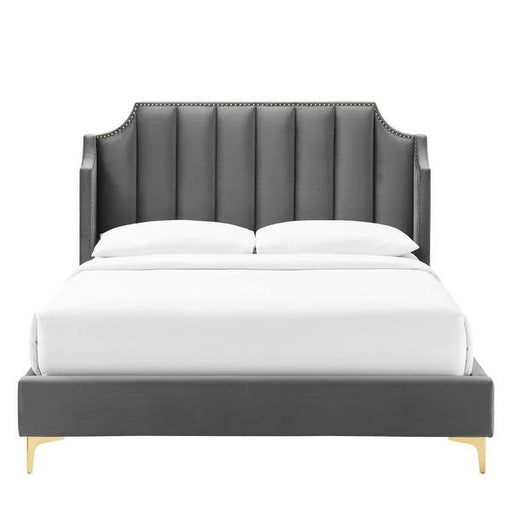 View full detailsInspire tasteful elegance and vintage modernity in a master bedroom or guest bedroom with the Liam Velvet Queen Platform Bed. This tufted bed bring...