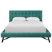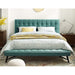 Bring elegant style to your bedroom with the mid-century modern Larry Tufted green Velvet Upholstered Queen Size Platform Bed featuring a solid wood frame construction upholstered in green stain-resistant performance velvet in a biscuit tufting design, wood slats that are designed to support your mattress without the use of a box spring with a center beam and support legs for additional support and lasting stability, with splayed and tapered black wooden legs adding a rich texture to this bed frame.The beds headboard features a green stain-resistant performance velvet upholstery with dense foam padding in a deep biscuit tufting design that adds style and elegance while providing a soft surface to lean against while reading or watching television in bed and remaining attractive during the day.Platform beds are designed to give your room an open concept feel and are perfect for those who don't like high seated beds.Perfect for contemporary and mid-century modern bedrooms, sleep soundly with a piece that imparts a sense of tranquility amidst an impressive backdrop of style. Add some luxurious style to your bedroom with this attractive platform bed.